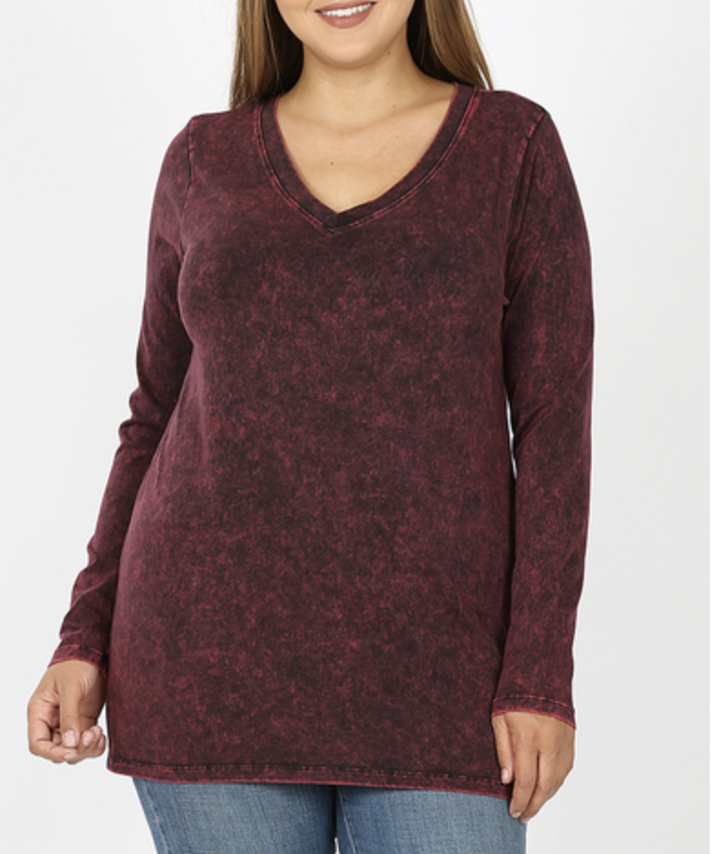 Love this long sleeve! Super fun colors and the acid wash and v-neck top the look! True to size, these are a more fitted feel.