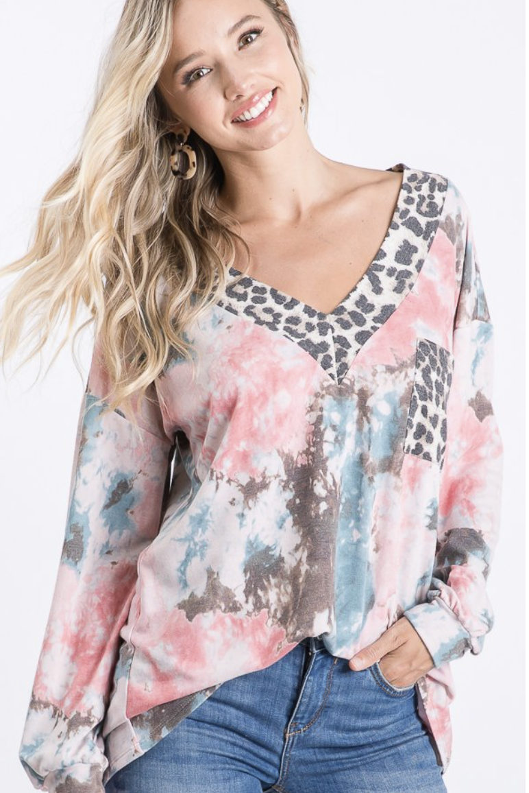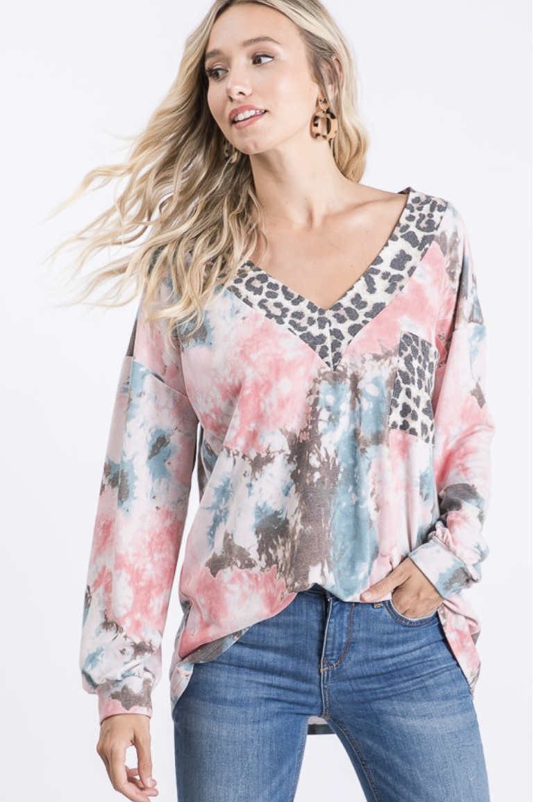 Love this loose fitting v-neck top! Wear it off the shoulder or on!