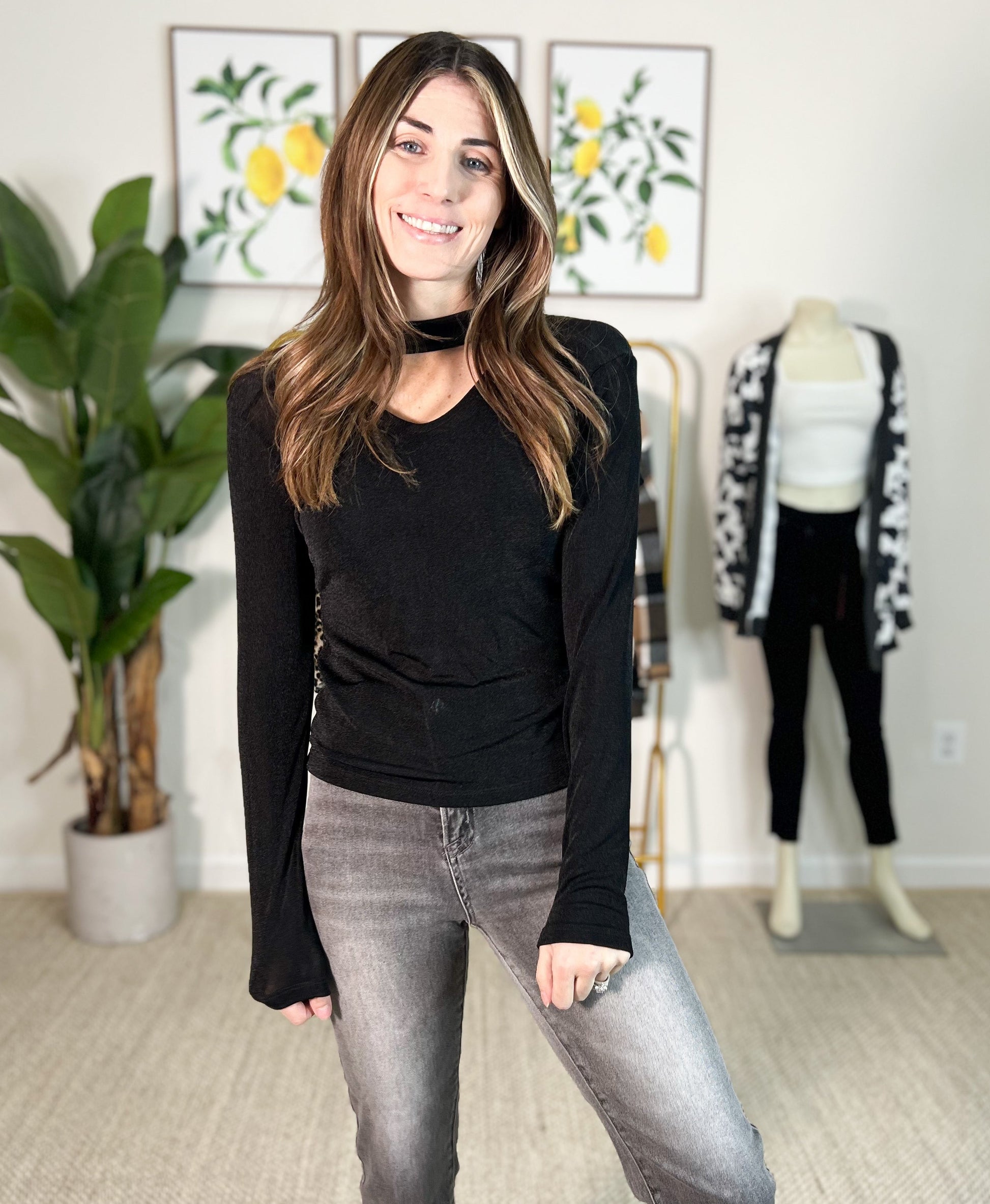 Fitted White Birch top that has a fun keyhole neck detail and stretchy material. Be sure to layer this one up, it has a sexy sheer tint!