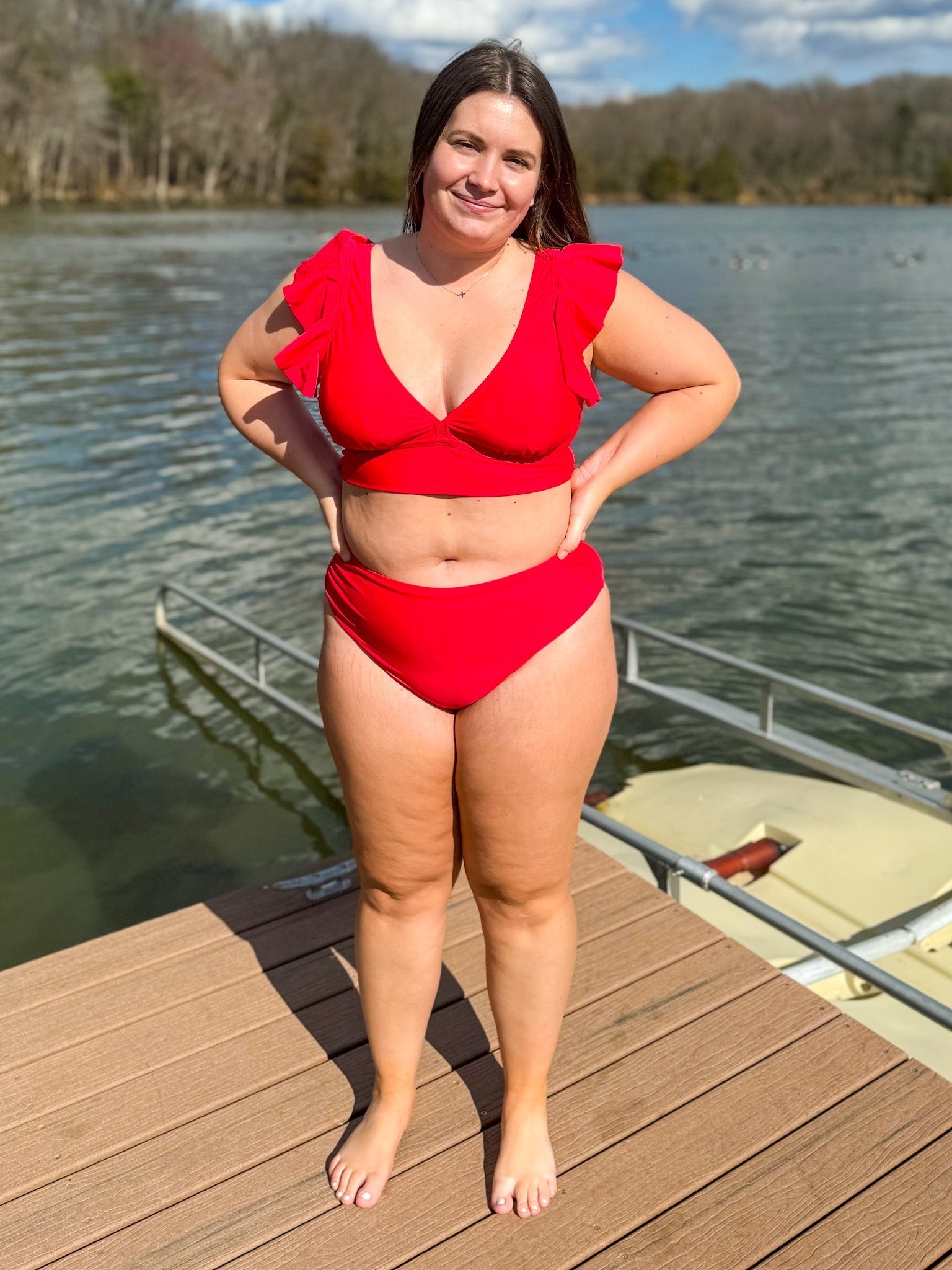 2 piece swim set! High waisted bottoms with wireless v-neck top!