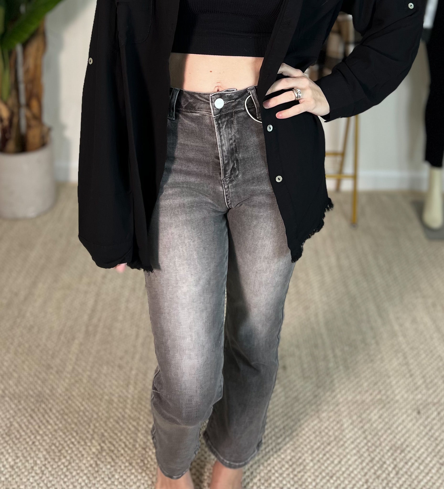 HIGH RISE CROP STRAIGHT JEANS Rise 13 1/4" | Inseam 27 1/2"