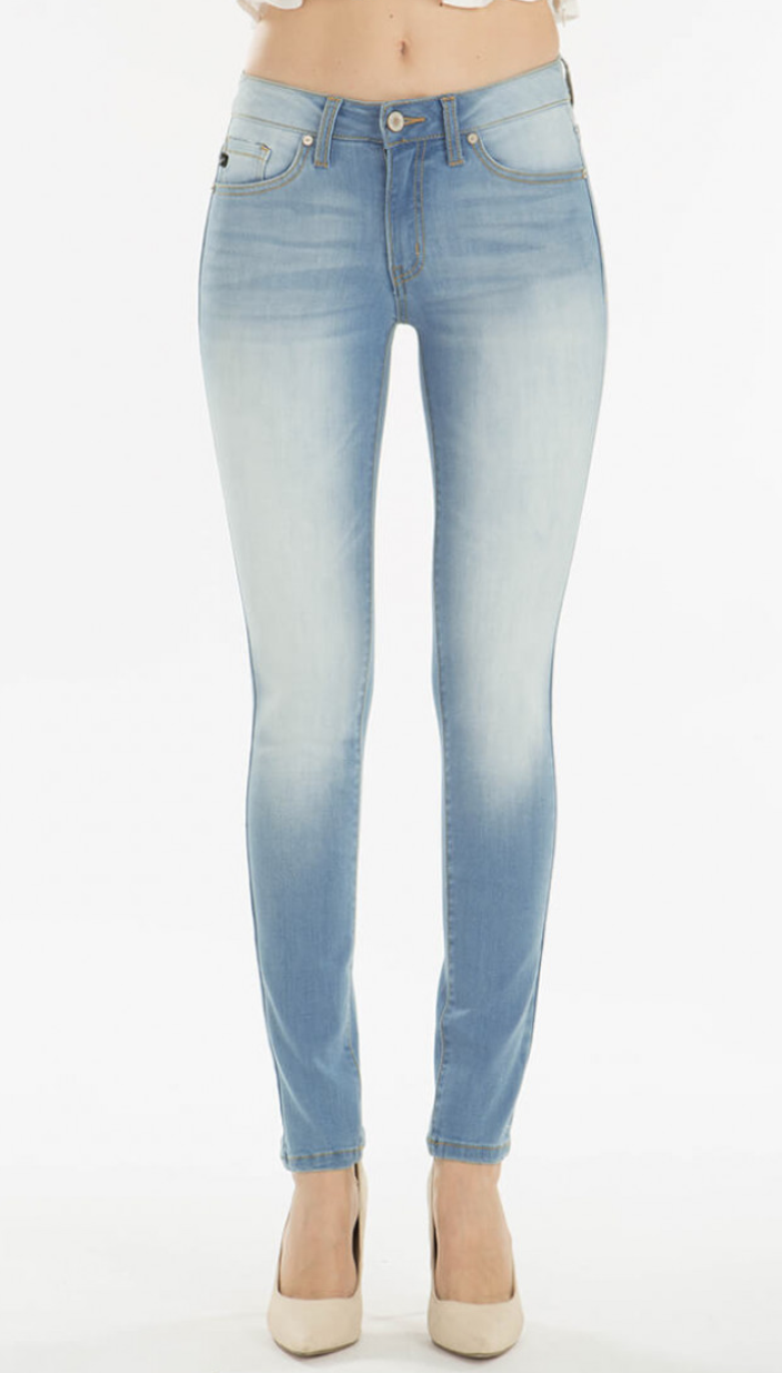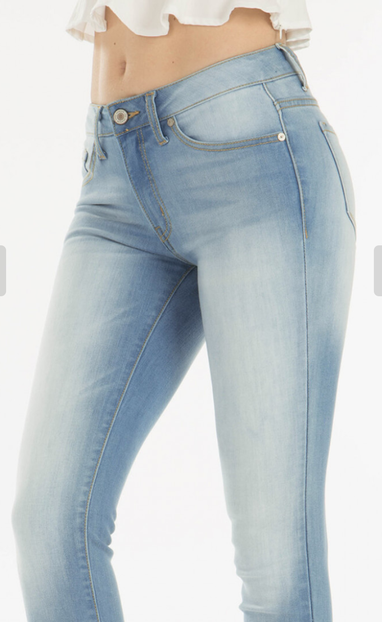 Mid rise, light wash denim jeans with no distressing. Everyone needs a light pair of jeans in their life! 29 1/2 inch inseam on these and 8 1/2 inch rise. Be sure to check the size chart on these!