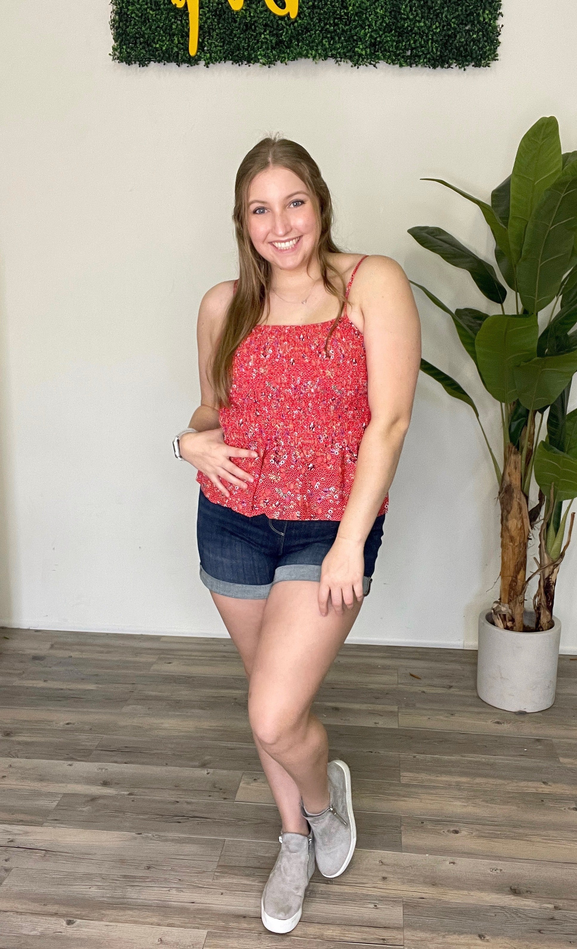 Smocked peplum tank top with adjustable straps!